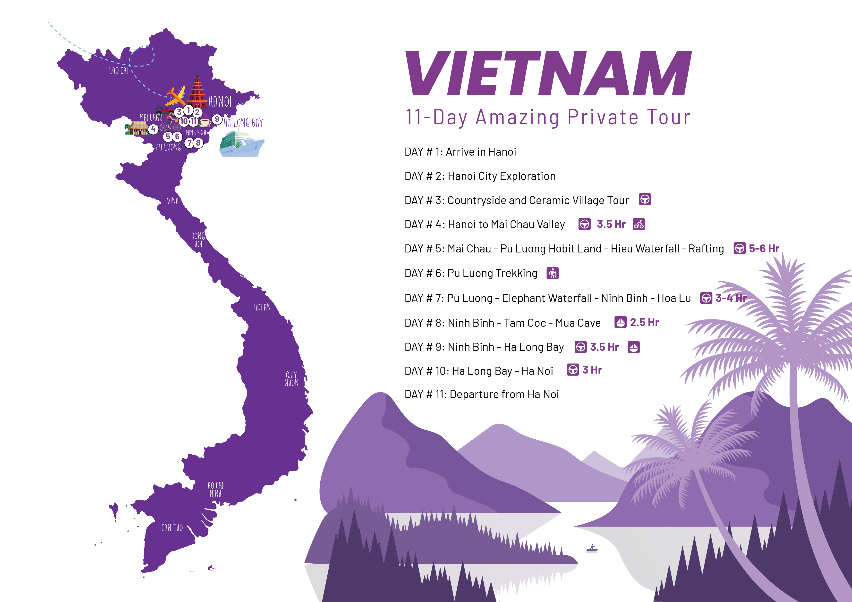 Ten nights of accommodation in carefully selected boutique hotels, eco-lodges, and a 5-star Ha Long Bay cruise